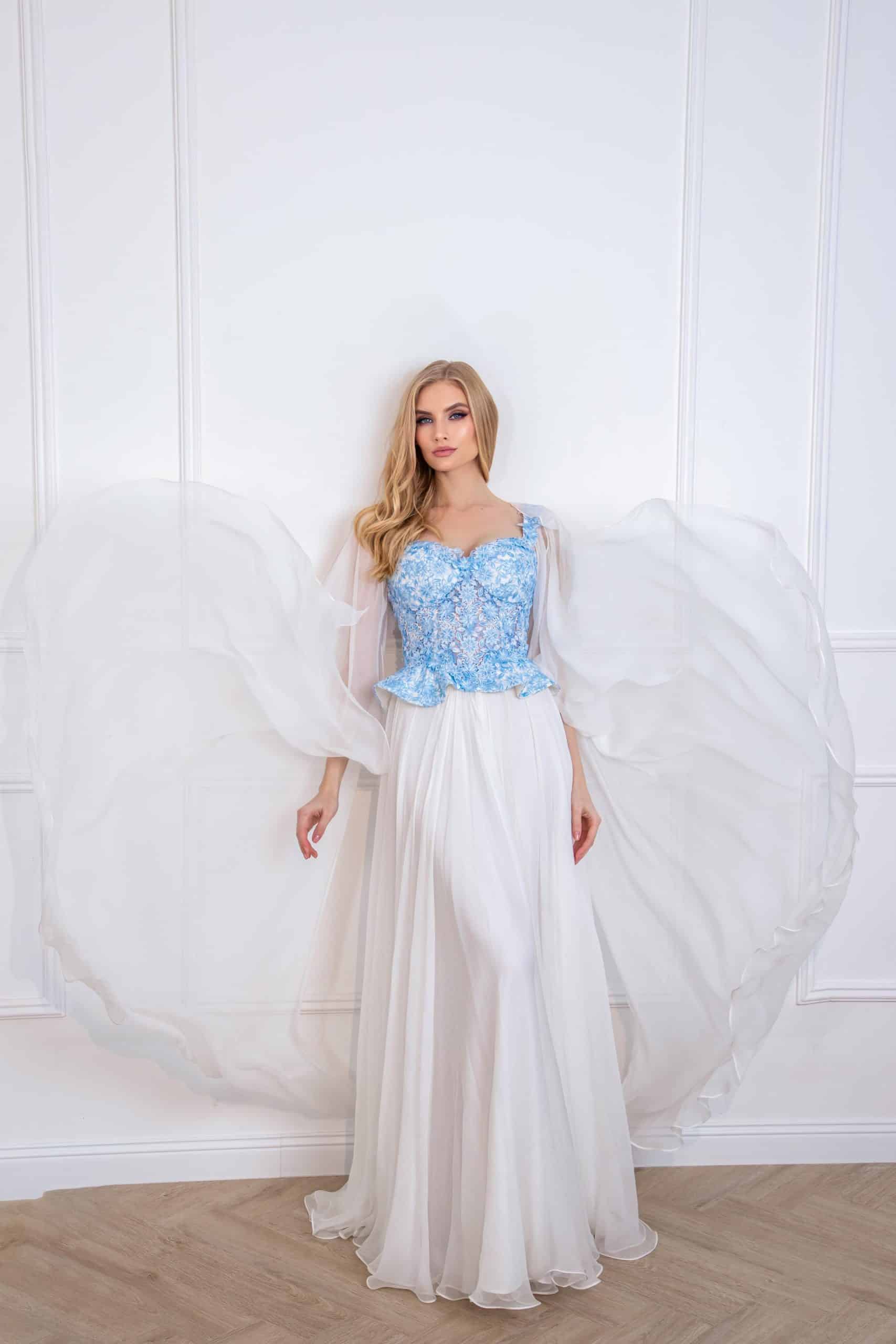 Step into a dream with our Celestia Dress, a masterpiece that captures the grace of an angel’s embrace. Crafted from the finest, airy chiffon, this gown flows like a soft whisper of the wind, enveloping you in elegance with every step.