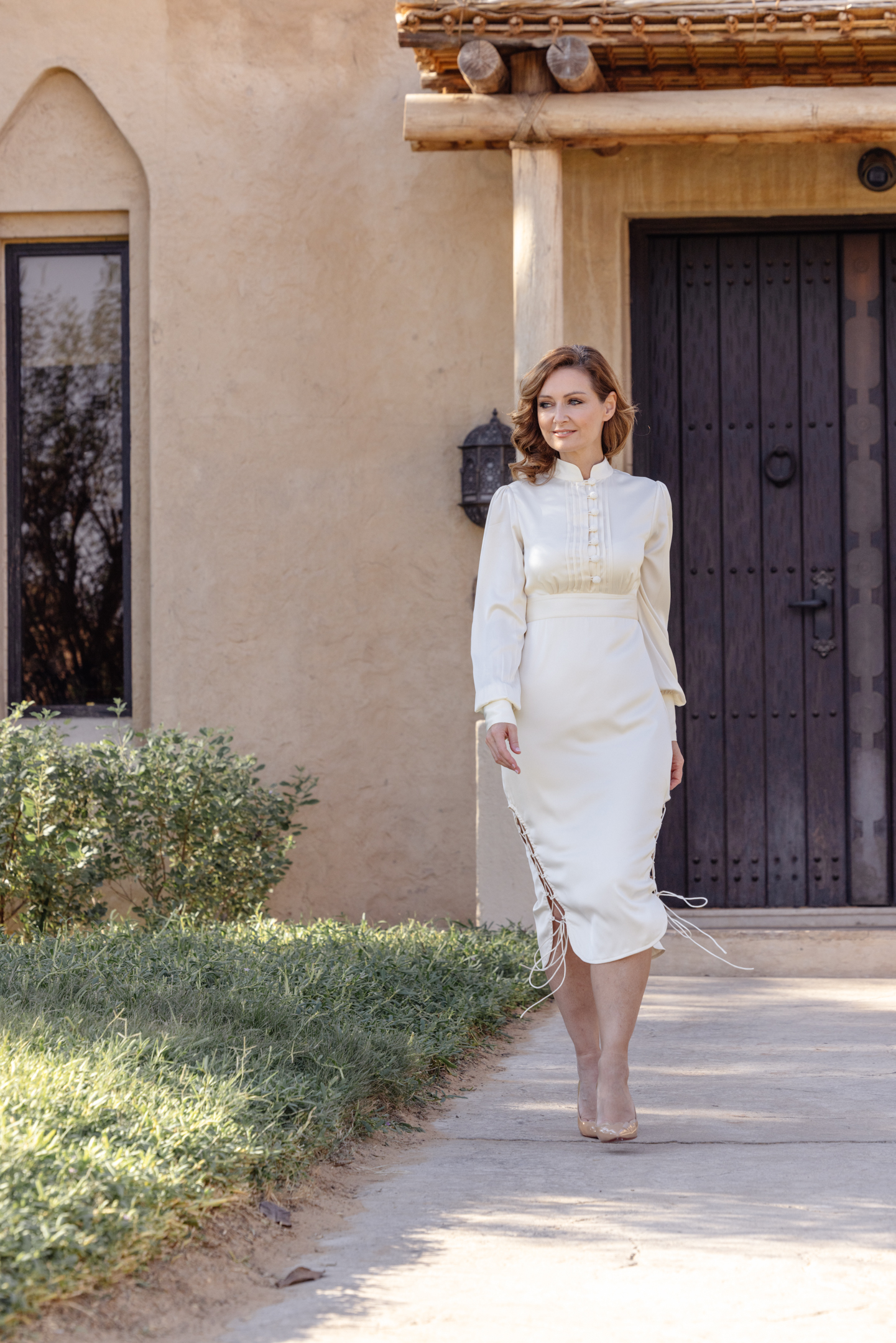 Graceful and beautifully crafted, this dress reveals all the talent of HHart, from the premium silk fabric and handmade crochet buttons and ever so feminine allure.