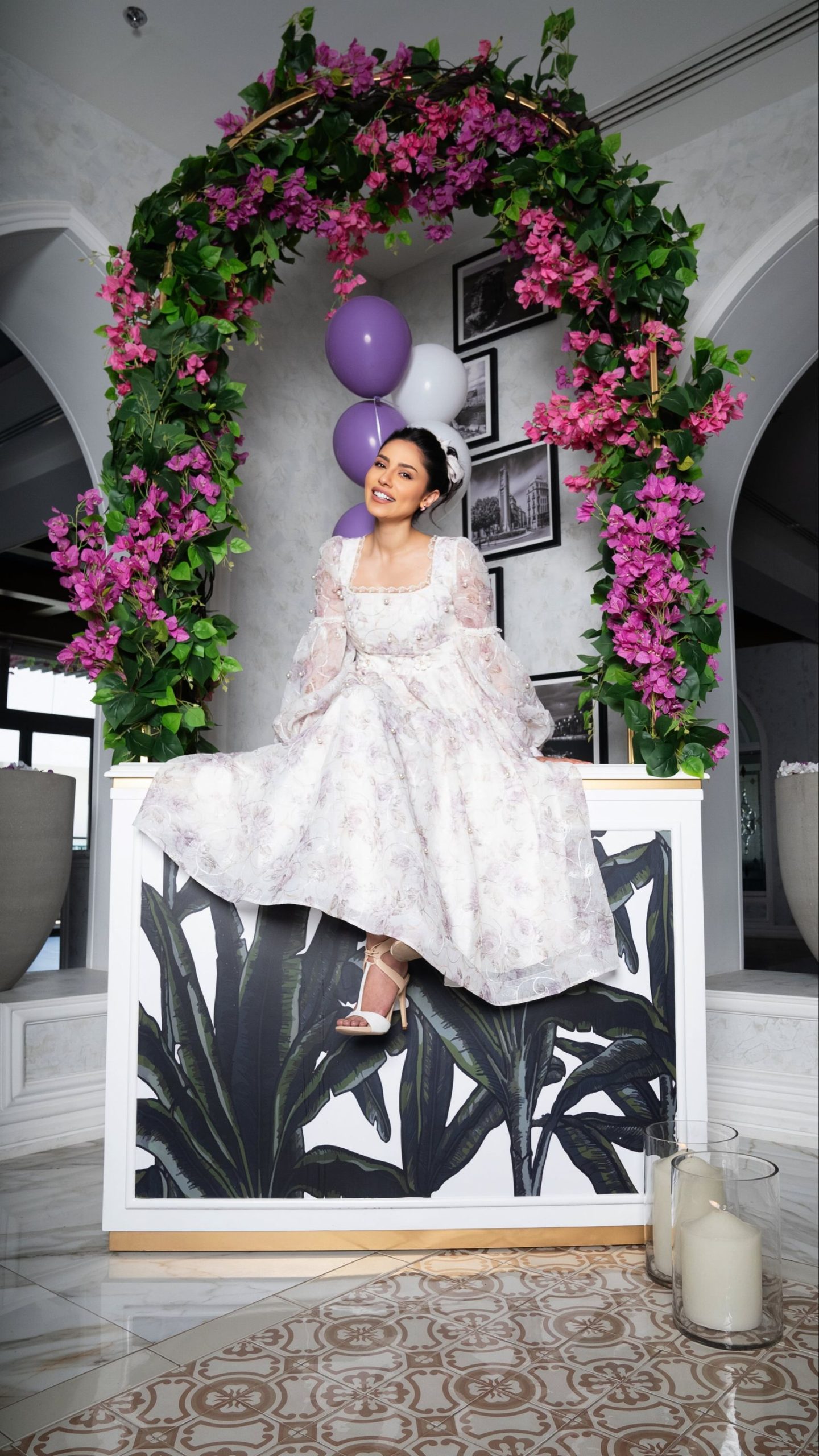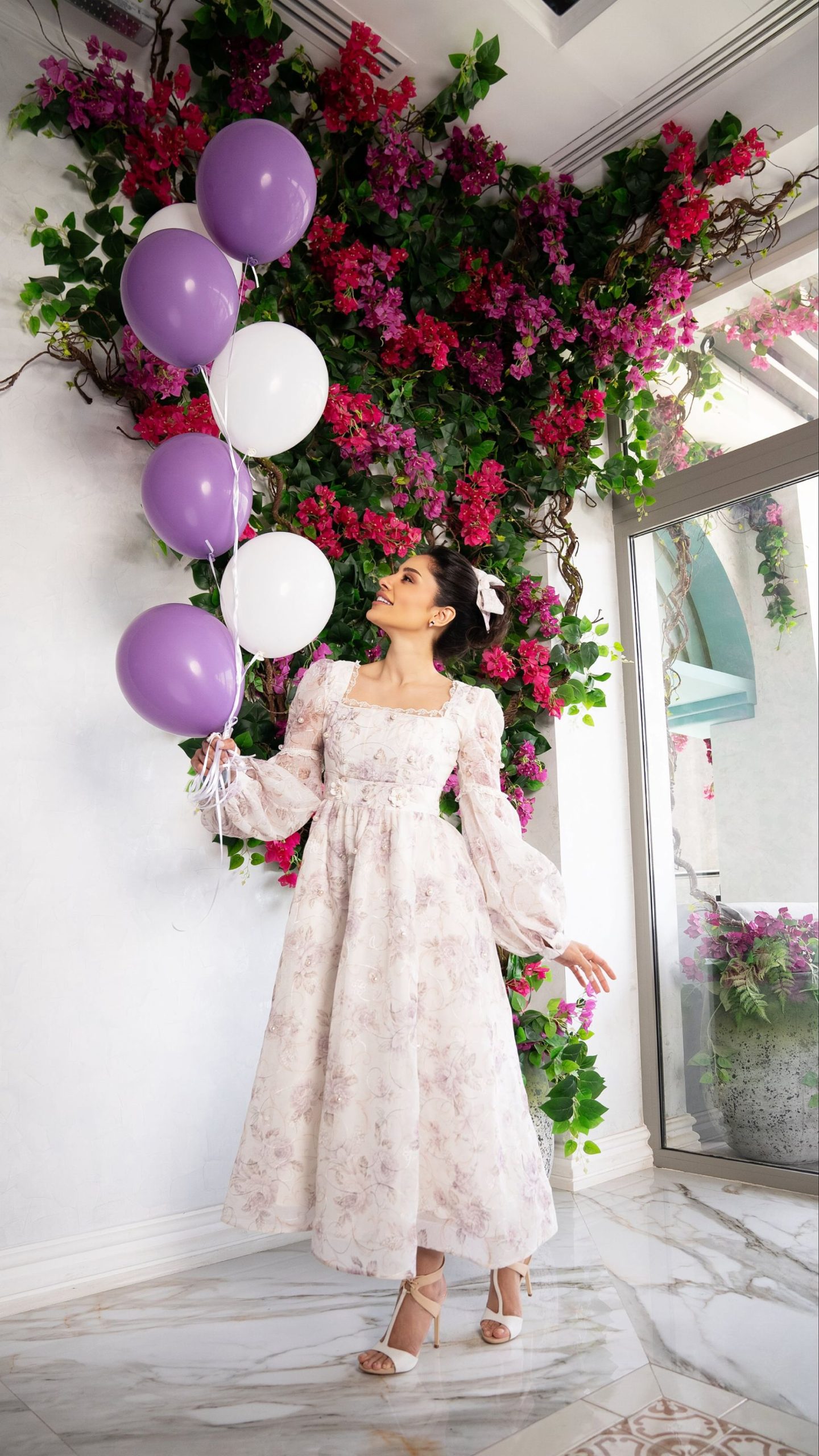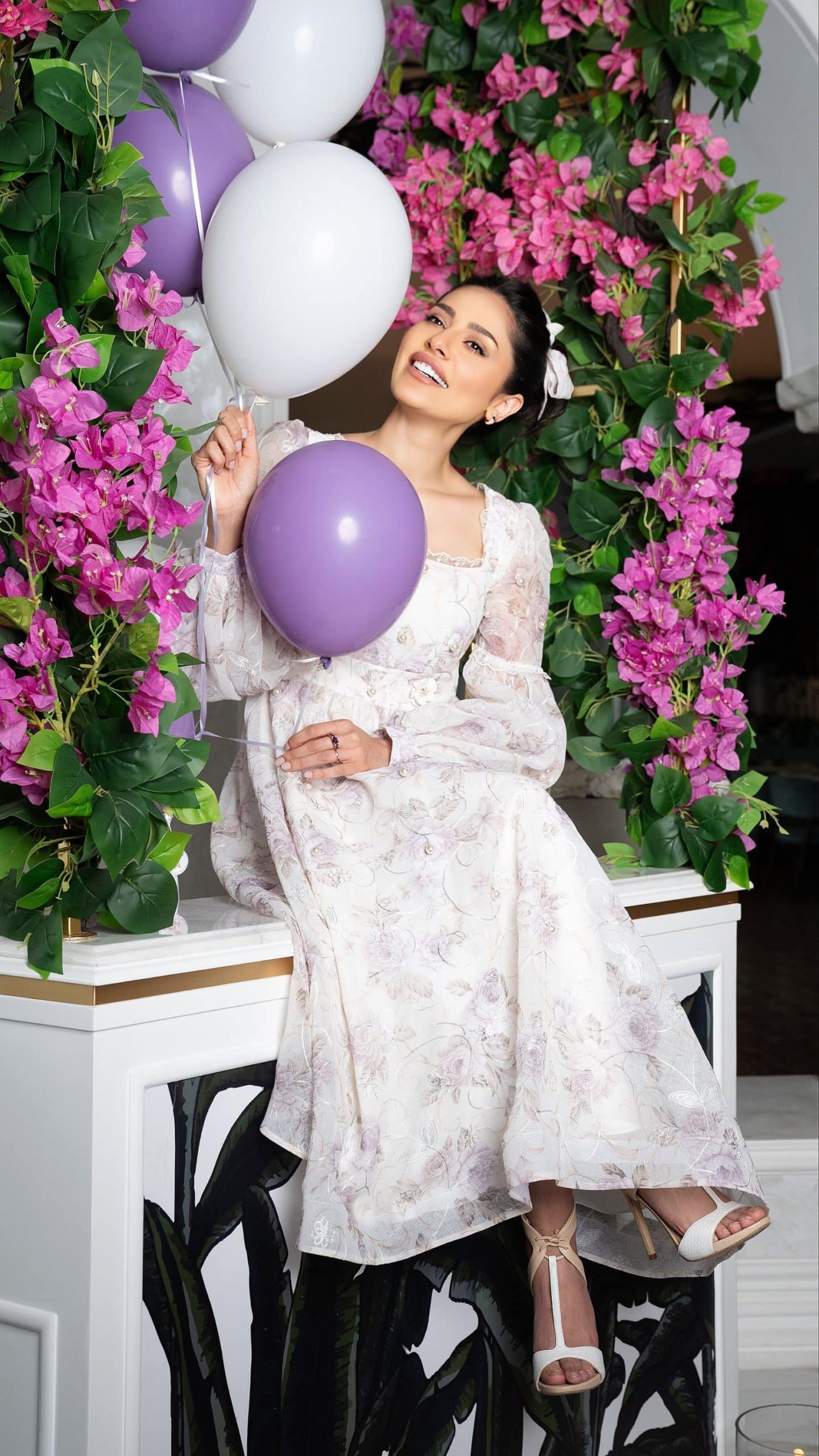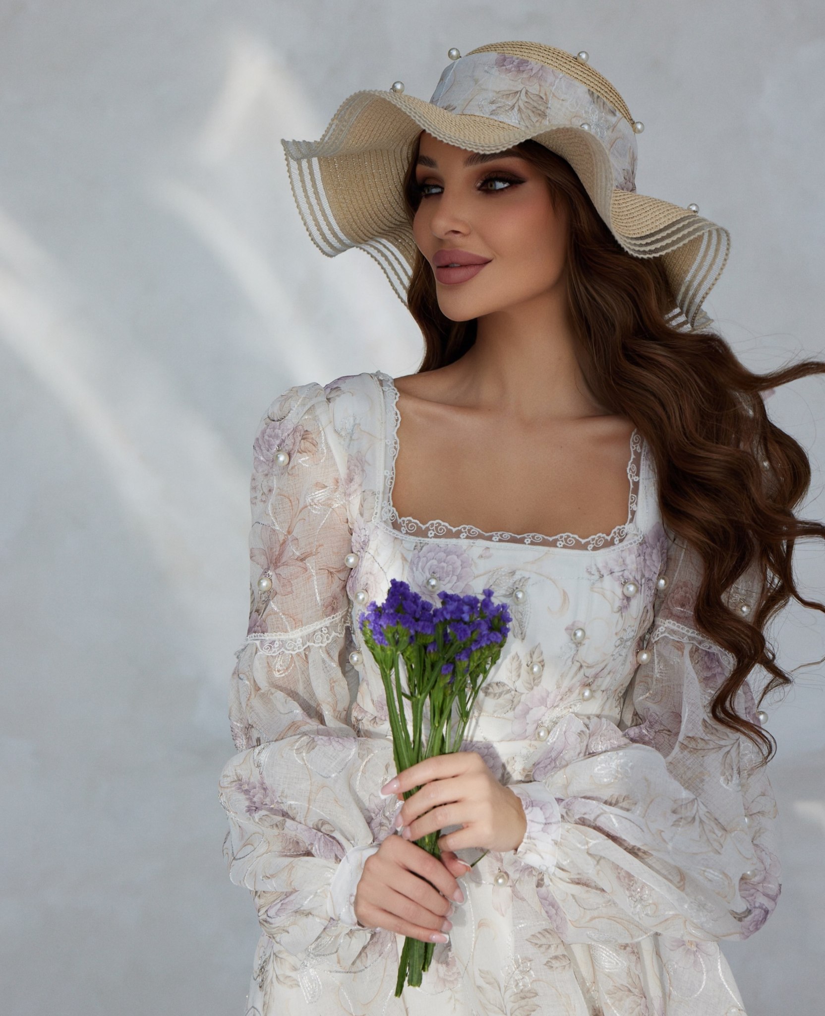 I made this dress thinking mostly about my beautiful Arabic ladies, they like pearls, flowers, silk, but I made it in linen. It’s delicate, one of my most beautiful flowers from my wonderful garden. Floral linen and fine Swiss laces set the poise, adorned with pearls and flowers, whilst the fluffy skirt grace the moment with infinite allure. Timeless and facetious, the Anna Karenina dress: a homage to femininity.