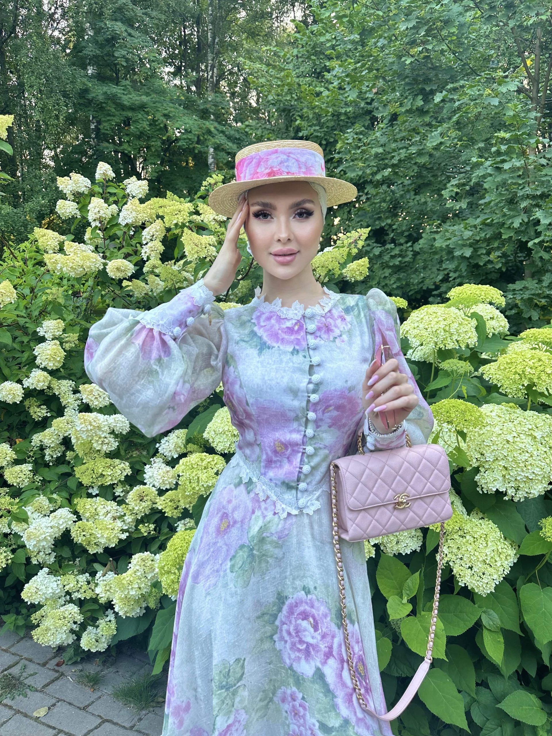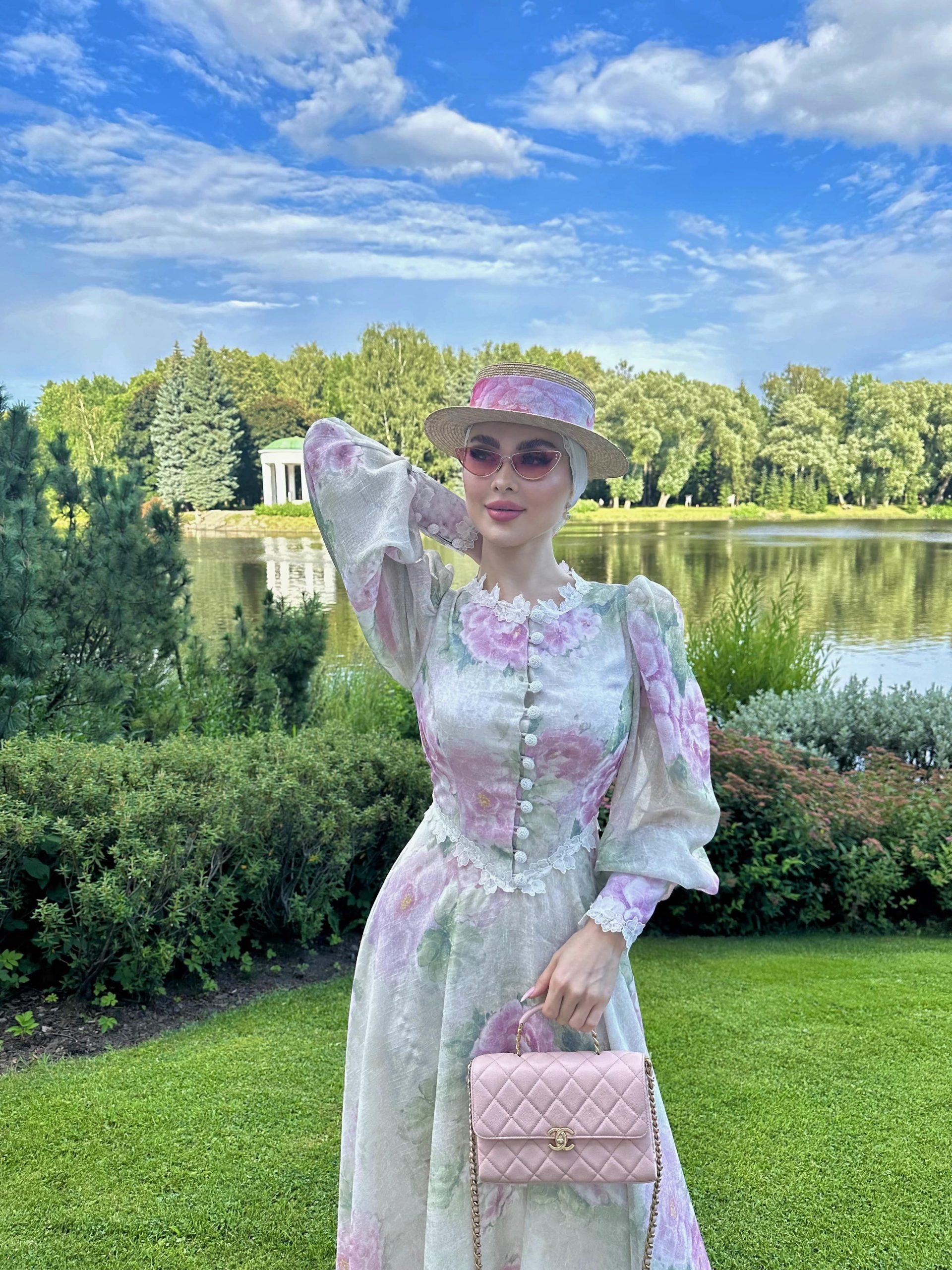Italian floral linen fabric with our limited-edition print. This creation was made for those aristocratic ladies who are destined to be the princesses of any event. Looks simple but so beautiful, we adorned it with delicate laces around the waist, neck and cuffs and beautiful crochet buttons.