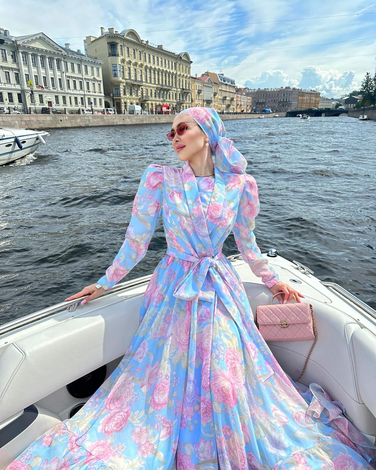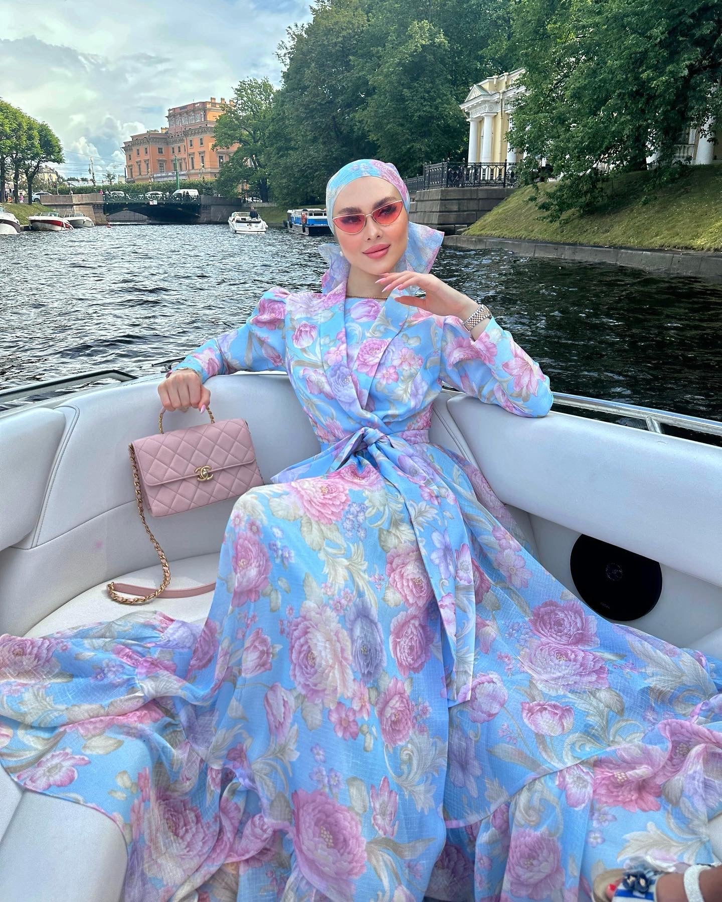 This beautiful creation looks like a blooming soul full of flowers. Designed to fit any mood, it is a limited-edition print with a sensual cutout that highlights the neckline and a separate belt that will emphasize your stunning feminine waist.