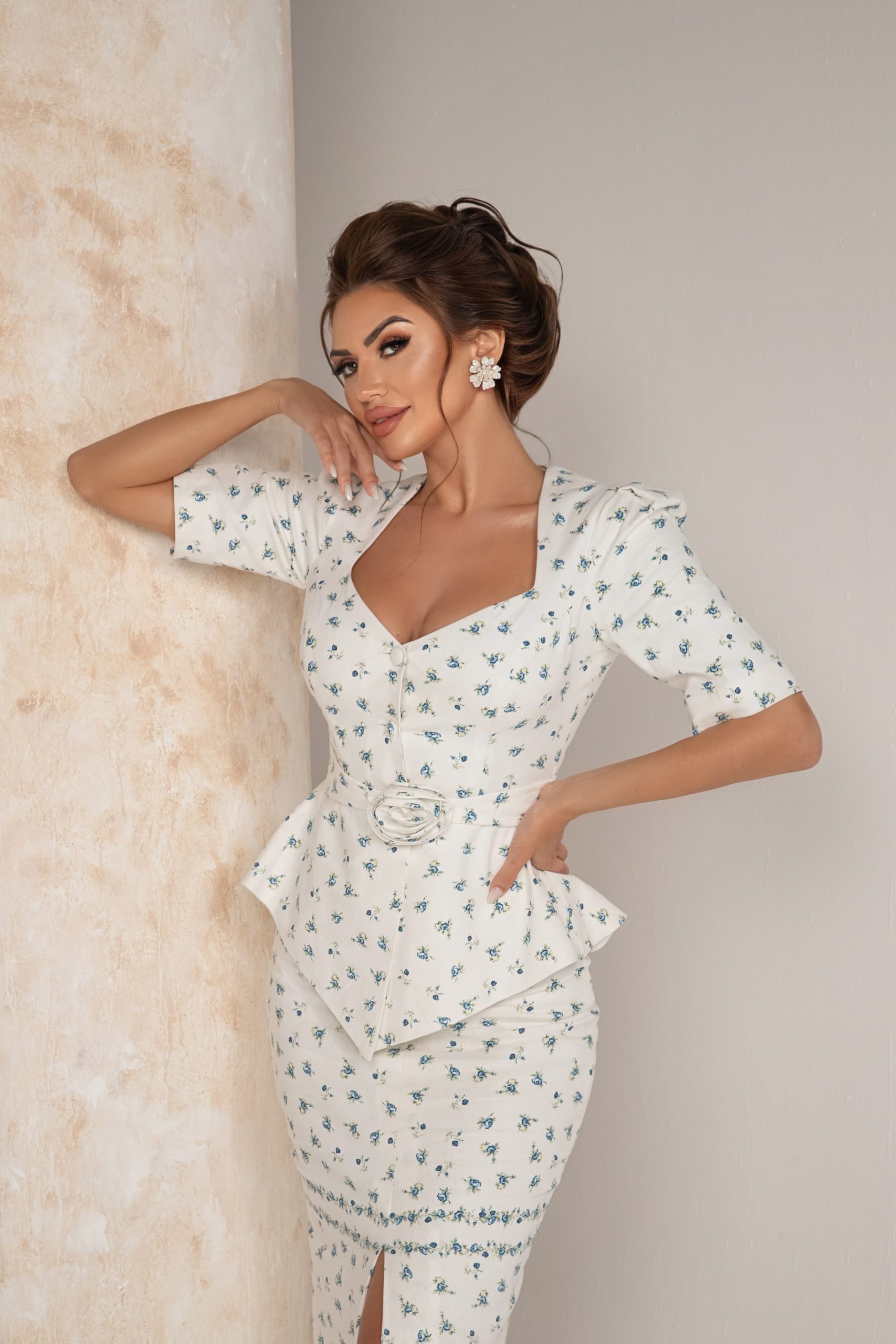 Introducing our exquisite old-fashioned woman’s suit, crafted from 100% floral linen. This timeless ensemble features a majestic collar cut, designed to make you feel both feminine and elegant. The jacket’s tailored fit and intricate floral pattern exude sophistication, while the con skirt complements your silhouette perfectly, offering a chic and polished look for any occasion. Embrace the charm of yesteryears with this graceful suit, destined to be the standout piece of your wardrobe.