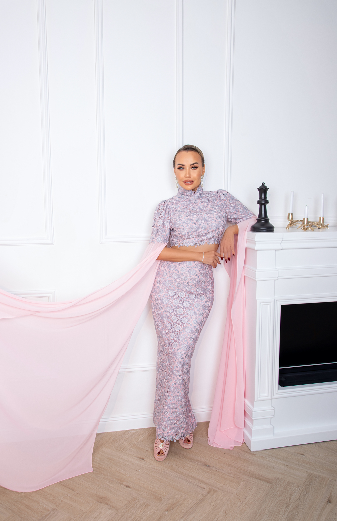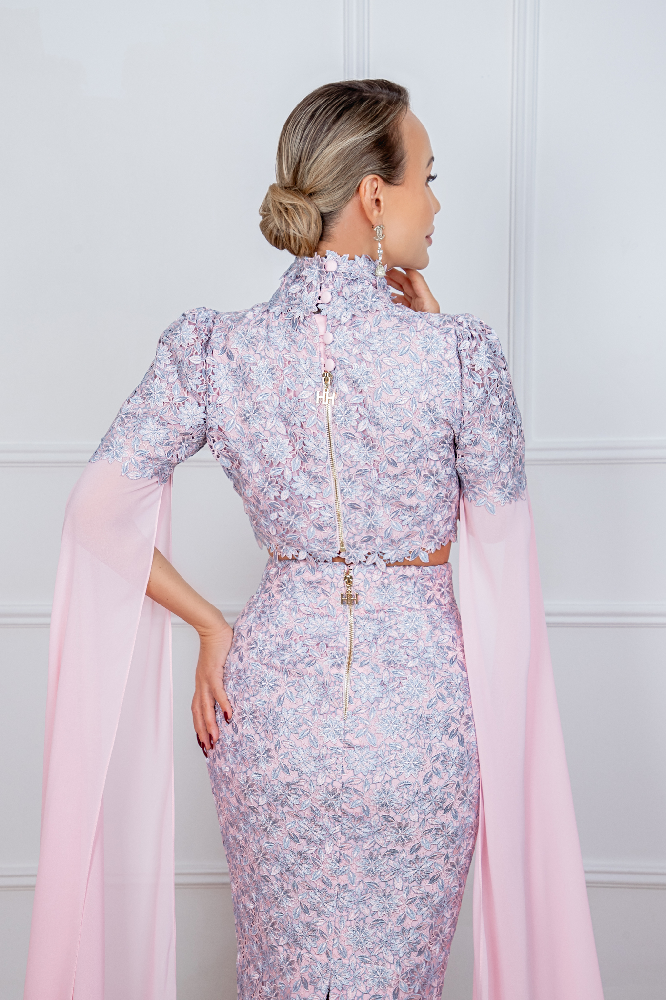 A fairytale woven in lace, where delicate blue and pink flowers bloom like a dream. This enchanting set captures the essence of romance and magic, designed for those who believe in beauty beyond time