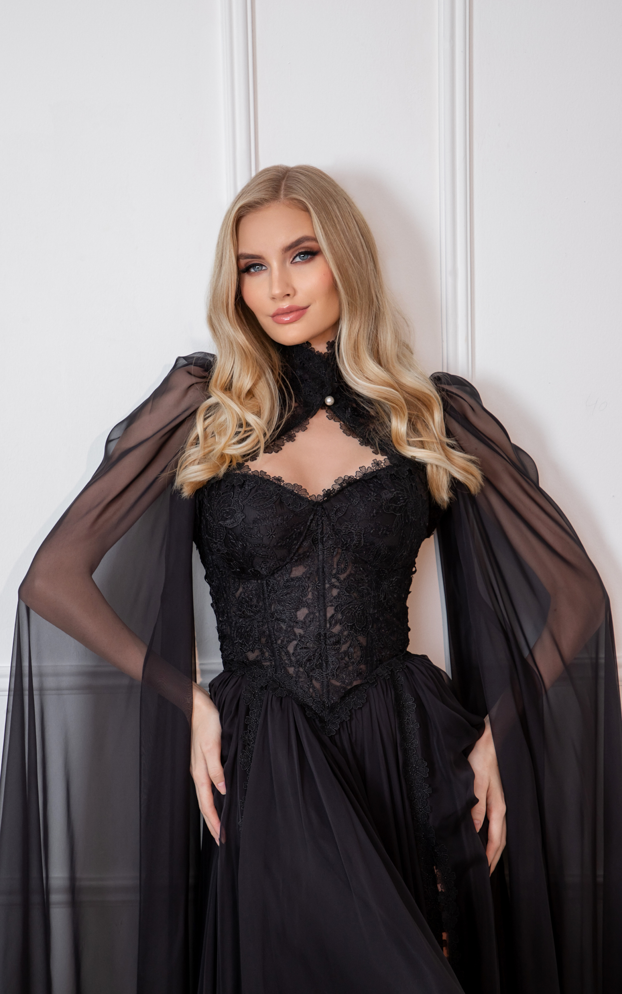 Completing the look is a regal cape with a high royal collar—an ode to timeless majesty. A true statement of sophistication and allure, The Majestic Whisper captures the essence of HHart: where couture meets magic.