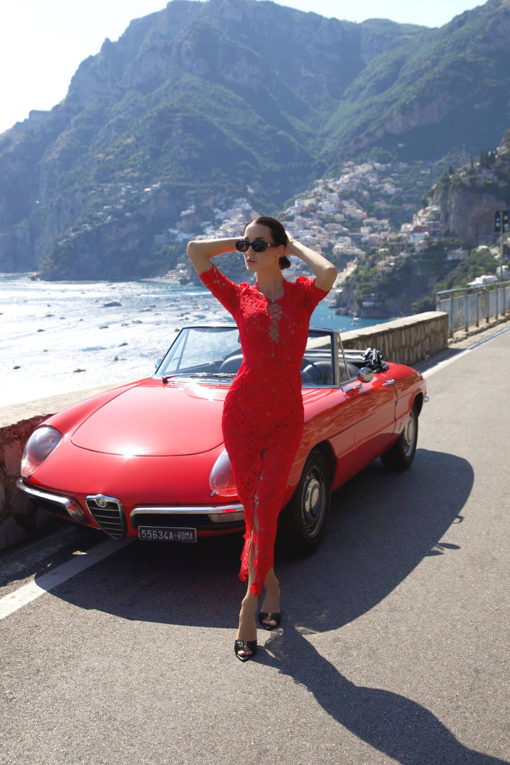 A stunning silhouette in vibrant red lace, Vita Rosa features a romantic lace-up neckline and a body-hugging fit. Perfectly tailored for elegance and allure, this dress is made to turn heads from sunset drives to elegant soirées.